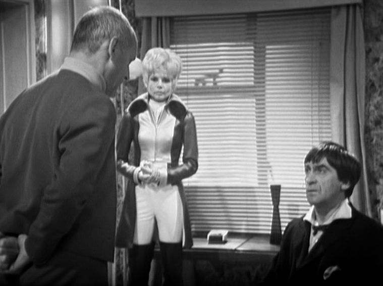 The Doctor, Jamie and Victoria are rescued by Astrid (Mary Peach). Our first sight of Astrid is from the rear and it’s easy to believe that this was a deliberate shot-choice from Letts as Ms Peach does have a rather attractive derriere. Certainly something for the dads there!