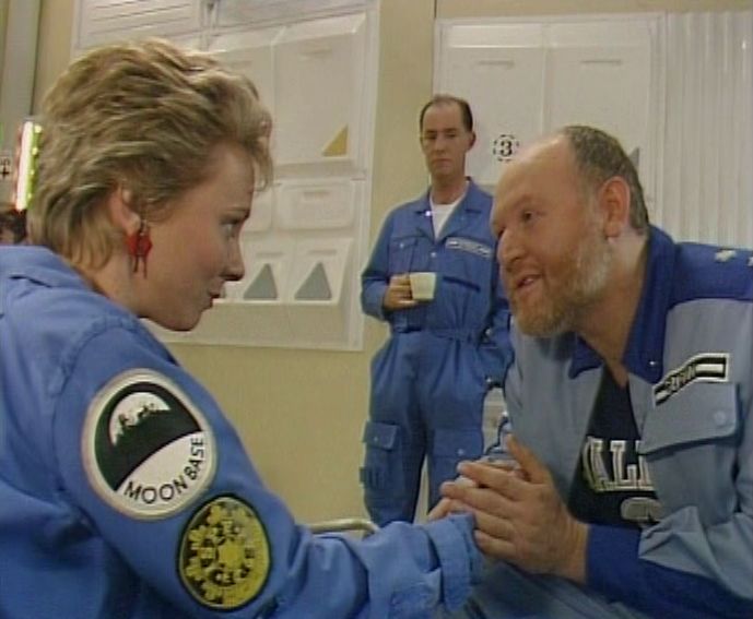 Back on the Moon, the new Moonbase commander Alexander Krivenko (Jonathan Adams) arrives. Viewed with suspicion by some, especially Devis, he seems fascinated by all aspects of police procedure and is keen to treat the Goodman disappearance as a test case. Judging by some of Devis’ dialogue, it would seem that in the Star Cops universe, the repressive polices of the Soviet Union are still alive and well – although Krivenko is an open and straightforward man. But it’s not surprising that the likes of Commander Griffin view him with extreme disfavour.