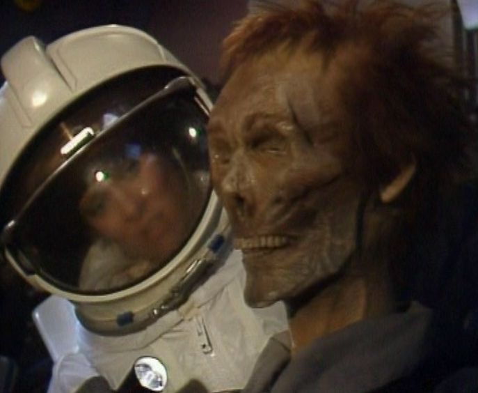 The scenes aboard the Pluto 5 are nicely shot by Graeme Harper, who manages to ramp up the tension and claustrophobia as Anna, Kenzy and Theroux investigate the stricken vessel. The realisation that one of the crew members is unaccounted for is the setup for a classic horror-movie shock as the decayed corpse makes an unexpected appearance!