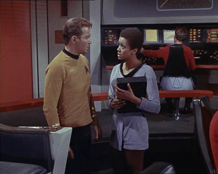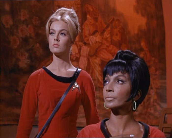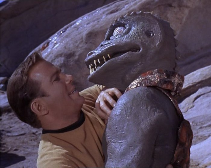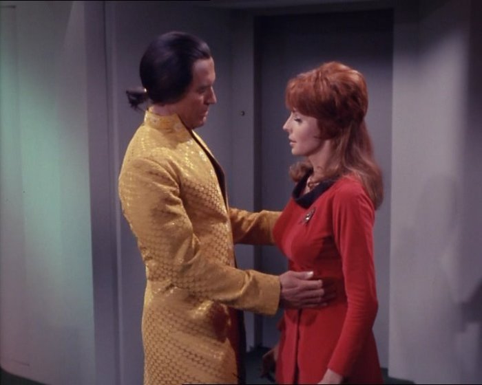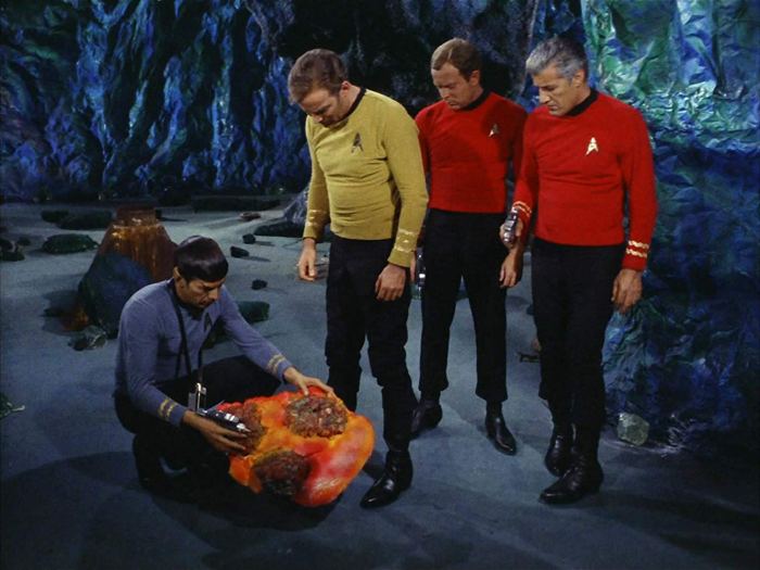 I do like the way that today’s eye-candy Yeoman (played by Maurishka Taliaferro) ventures the opinion that the parasites don’t look real. It’s a dangerous game to play though – once you start pointing out how absurd or artificial things are, you’re on a slippery slope ….
