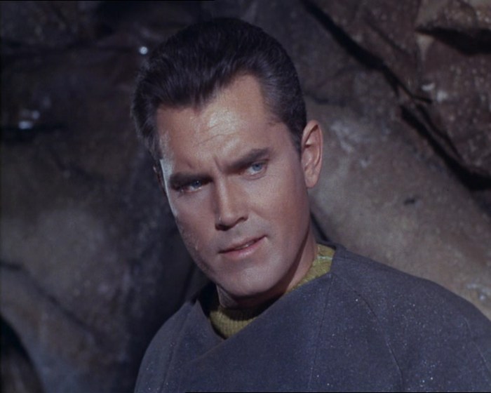 As often with Star Trek, guest roles are few and far between. There may be a million colonists on Deneva, but they’re represented by several pipe-wielding types and Jim’s family. Kirk’s brother, Sam, is dead when he arrives and Sam’s wife, Aurelan, follows shortly afterwards. Although not before she’s done a great deal of screaming and wailing.