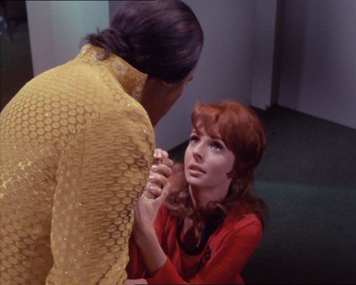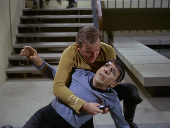 Kirk is very snappy throughout. The reason is obvious (Jim’s brother, sister in law and nephew live on a colony planet called Deneva, currently in the grip of an outbreak of mass insanity) although it’s still jarring to see him snap at Uhura for no good reason.