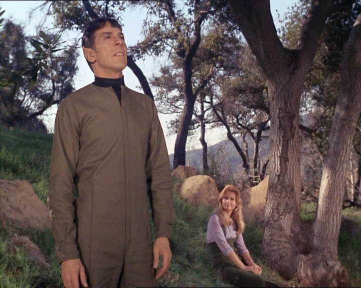 This downbeat mood also infects McCoy, who later has a short argument with Nurse Chapel about the best way to treat Spock. All of these moments help to disguise the fact that there’s a rather pulpy science fiction idea at the heart of this episode.