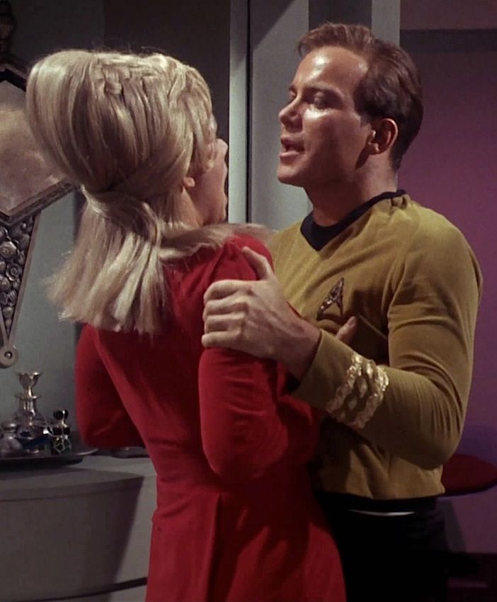 Kirk being copied is a wonderfully pulpy sci-fi moment – a naked Jim (save for a covering to conceal his modesty) is strapped to a revolving table whilst a shapeless form lies next to him. After a few minutes the object gradually turns into a duplicate Kirk. So does this mean that there was there a real Andrea once upon a time?