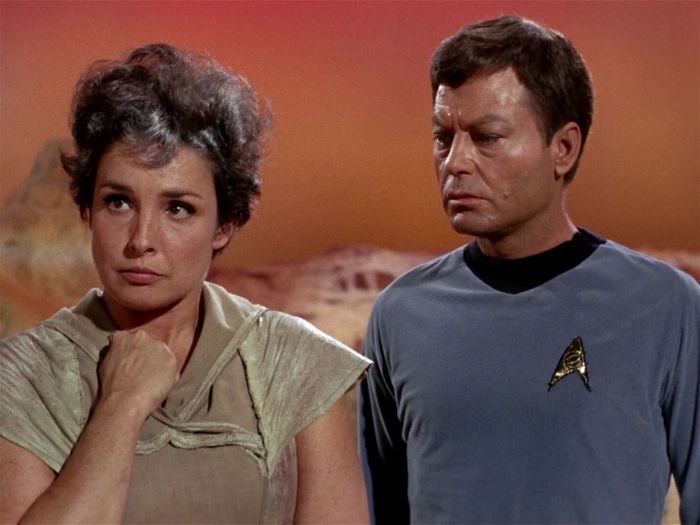 What Are Little Girls Made Of? gives Majel Barret a major role, although Christine is fairly passive throughout. Nurse Chapel and Kirk beam down to the planet’s surface together, but they’re never as engaging a team as Kirk and Spock or Kirk and McCoy would have been. The fact that Spock and McCoy remain on the Enterprise does weaken the story a little. Indeed, we don’t see Bones at all, which is a shame.