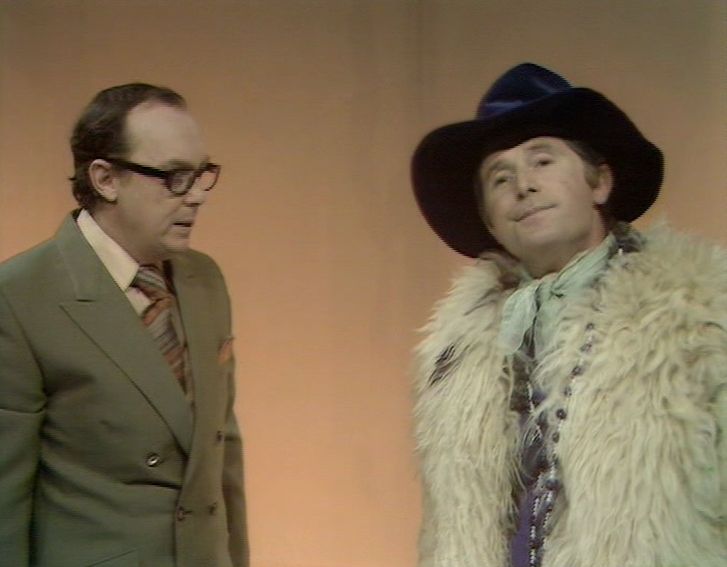 There’s plenty of great lines here as Ern tells Eric, “A couple of nights ago, I had a happening. I freaked out in the King’s Road. Pow! I went to this discotheque. I met this dolly bird and we really moved it!”. Whilst Ern is chuntering away, Eric remains fascinated by his coat, “Does it tug when you go past a lampost? Now, promise me one thing, Don’t ever go to the countryside wearing that coat. If a big lusty farmer sees you, you’ve had it. You’ll be dipped and sheared before you know where you are”. A be-wigged Diane Keen makes a brief appearance as a dollybird.