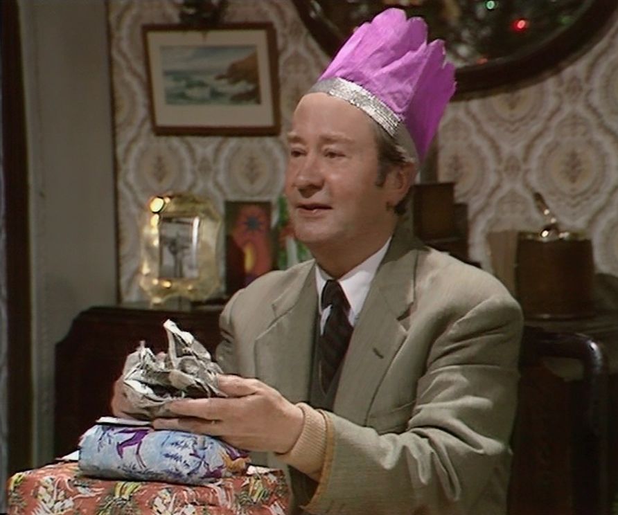 Back at Clegg’s house it’s finally time for the presents. It’s always seemed slightly odd to me that Clegg and Foggy wrapped their presents for Compo in the same type of wrapping paper (plus their presents to each other were also in identical paper, albeit different from Compo’s). If you see what I mean. It’s probably easier to understand when you watch the scene but there’s something not quite right there.