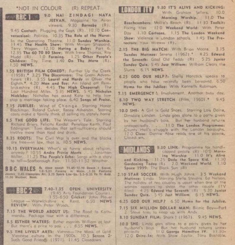 Rounding off my week in 1977 with a skim through Sunday’s schedules.