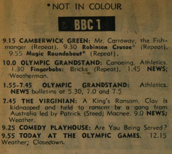 It’s true that Today at the Olympic Games in the RT lasted an hour longer, but if the broadcast programme was curtailed (finishing around midnight instead of an hour later) there’s still no reason to have bulked out the schedule with AYBS? (as a midnight closedown would hardly have been unusual).