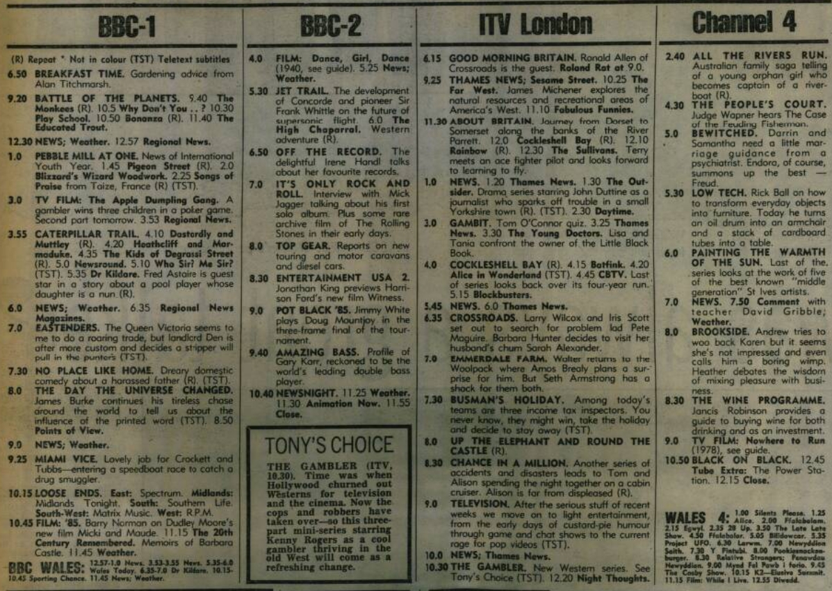 Later in the series there’s a sketch set in a British Rail lost property office. Spike is the attendant, dressed as the Lord Chief Justice of England, and proceedings kick off with Spike and Bob Todd conversing in morse code. Say what you like about Q, but it’s never predictable. Todd can barely control his giggles, whilst David Rappaport passes by purely so that Spike can make a groanworthy pun. Throw in a spot of blackface, Keith Smith as a ghost and David Lodge dressed as a woman and you’ve got everything that made Q the series it was in highly concentrated form.