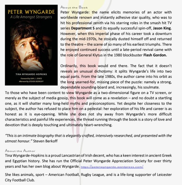 A biography of the legendary cult actor Peter Wyngarde is due to be published on the 28th of February 2020 by Austin Macauley Publishers Ltd