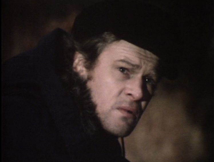 With only limited resources, it’s quite tricky to create a London that’s virtually empty of living people (but this is achieved by shooting at night and the night-time filming does also help to increase the sense of unease). The Fourth Horsemen benefits from being shot in the normal way for BBC drama of this period – VT for the studio scenes and film for the location scenes. The majority of the later episodes would be all VT, which does actually work quite well, but the film night shooting in this one is very evocative.
