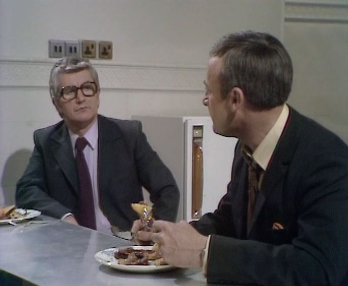 Robert Lang is well served by this one. Not only has Skardon gained a girlfriend, the very attractive Barbara Fairlie (Sandra Payne), but he’s also given some killer lines. When informed that the Home Secretary is beating a path to his door, he replies on the intercom that he’s preparing to genuflect. Smith overhears this, leading Skardon to respond that on reflection he can’t. “Injury sustained in youth. Choirboy’s knee”!