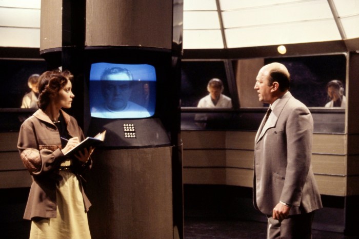 1990 is a grim place then, but there are still a few people attempting to resist the state. One is Jim Kyle (Edward Woodward), a journalist on The Star, one of the last independent newspapers. The PCD, in the form of Controller Herbert Skardon (Robert Lang) and his two deputies, Delly Lomas (Barbara Kellerman) and Henry Tasker (Clifton Jones), keep him under close surveillance, which leads to a tense battle of nerves.