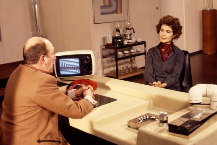 There’s more than a little touch of 1984 about the series of course (Greatorex referred to it as 1984 plus six). This is particularly evident in the opening few minutes as we observe how the PCD are able to monitor everybody, both visually and aurally, although wise old hands like Kyle are able to give them the slip with embarrassing ease. The relationship between Kyle and the members of the PCD is already well established before the episode begins and it’s his interaction with Delly Lomas which particularly intrigues. Since Skardon mentions that Kyle likes her cooking, it’s plain that, despite the fact they’re on different sides, there appears to be some sort of spark between them. Or are both simply playing games? At one point Kyle directs this comment to her. “How do you look like you do and do the job that you do?”