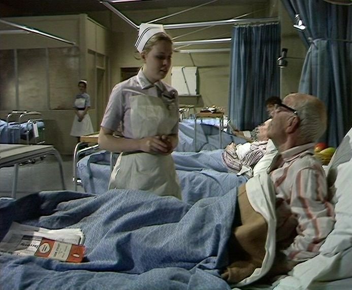 The new Maureen is discussed by Pat and Jo in a later scene. Pat is of the opinion that her friend has now become the perfect nurse (which isn’t a compliment – Pat contending that her responses to the patients are now mechanical rather than honest).