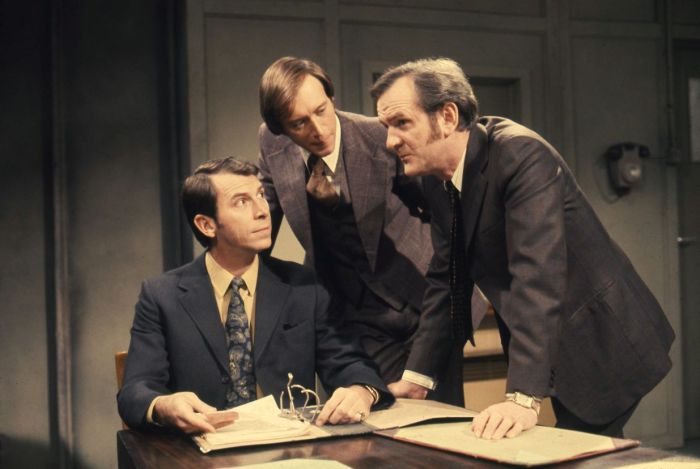 Derek Benfield excels during the next episode, Riley, as Bill’s criminal conviction (even though it was all the way back in 1948) is raked up by the police, who decide he’s implicated in the hijack. Hugh Sullivan and Brian Grellis play the two coppers who delight in making Bill sweat. Grellis (DS Pritchard) is the good cop whilst Sullivan (DI Parsons) is most definitely the bad cop. Temporarily moving the focus away from the boardroom and bedroom squabbles and onto Bill Riley is a good move – since it helps to shake up the narrative a little.