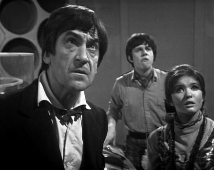 After the Doctor goes out to explore on his own, Jamie and Victoria are left cooling their heels. A subtle shift in their relationship has taken place since Tomb – in this first episode especially, Victoria is the pro-active one – keen to go exploring while Jamie is cautious and reluctant to disobey the Doctor’s instruction to remain inside the TARDIS.