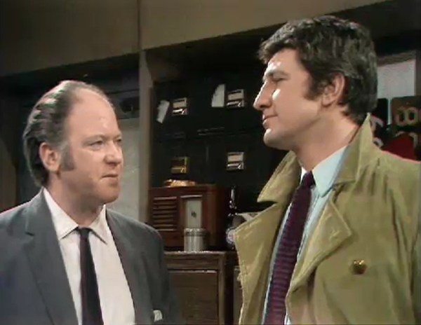 Last time, I pondered about how the series possibly balanced its budget by offsetting episodes with major location shoots against ones which were mainly studio bound. The Easy Job does have the feel of a cheapie. I felt this most notably after the house-breaking gang – led by Jimmy Davies (John J. Carney) – were arrested. We’re told that the police pursued the gang in a hectic car chase but this isn’t seen, only described. A cost cutting exercise? Maybe. There are a few brief location shots (showing Hicks, Mason and Smith exiting the factory) but most of the episode remains in the studio.