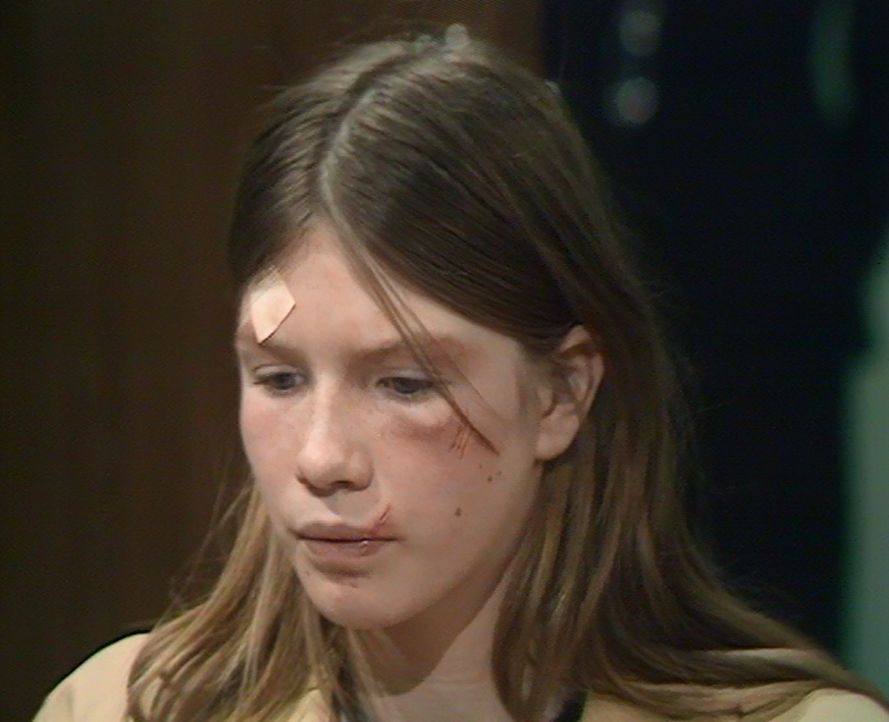 Later, Snow and Drake visit the café and are equally as hectoring, especially Snow. Now present is Marion Greenwold (Shelley Harris), who’s come to seek help from Dean (the architect of the sticker campaign). Marion is only seen briefly, so when Evans discovers a woman in the railway station toilets with both wrists slashed, it’s not immediately apparent that it’s her.