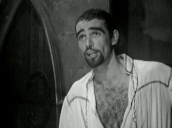 Given that this television play would also need to call on the audience’s suspension of disbelief, the Chorus is retained and, as played by William Squire, he is able to take us through the early action and operates as a narrator. A more filmic dramatisation could have dispensed with this device, but the theatrical nature of this play suits the Chorus well.